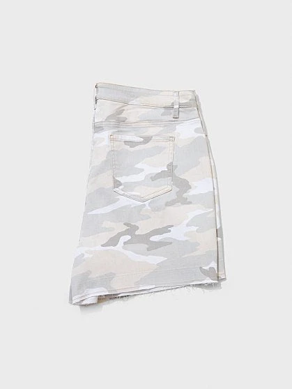 Featuring a white camo print, these high-rise jean shorts are perfect for all your laid-back summer looks.