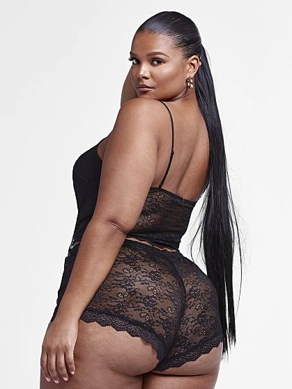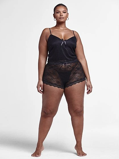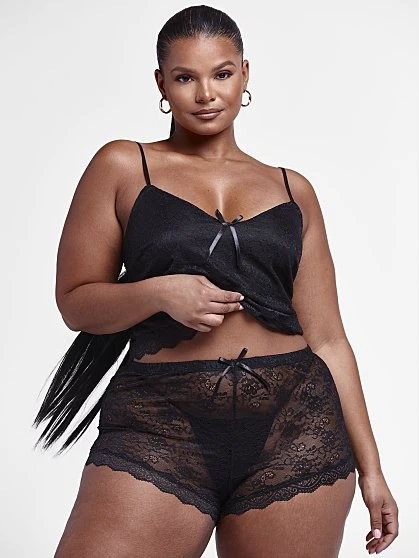 Look luxe and sexy in this cute lace tank and short set. Features a tank top with adjustable spaghetti straps, V-neckline, sheer lace back and trim, cropped hem with a matching pair of sexy lace shorts. Wear with or without panties, depending on your mood.
