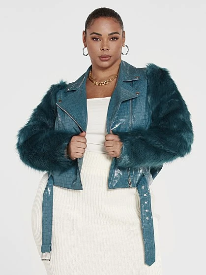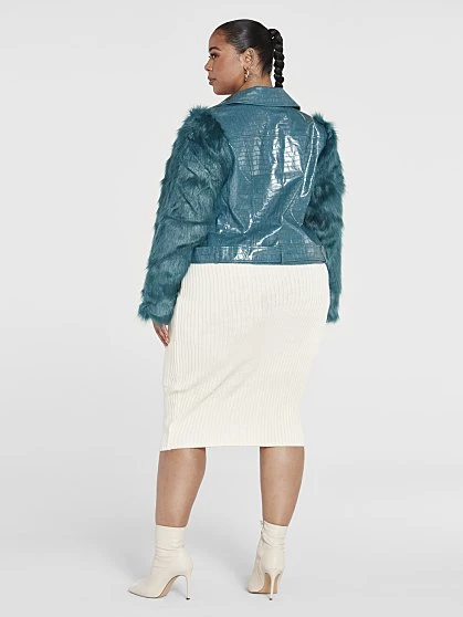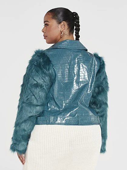 Be the first to review “Fashion To Figure Jamila Croc Faux Leather Moto Jacket With Fur Sleeves” Cancel reply