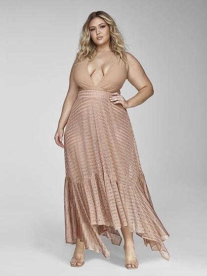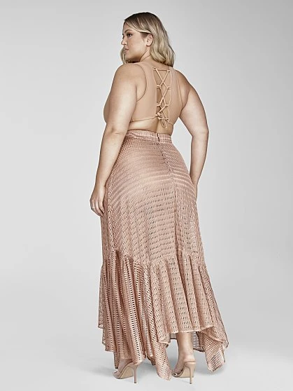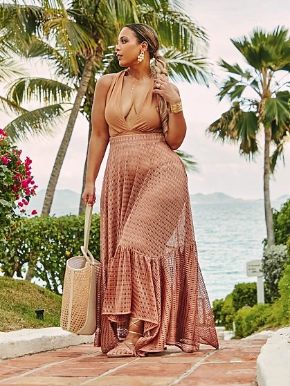 Luxe and so chic with a touch of sexy, this neutral maxi skirt will quickly become your go-to style to wear poolside and on the beach. The beautiful stitching on the mesh netting fabric, maxi length and shark bite hem come together to create a gorgeous separate that can effortlessly be worn with so many swimsuits. Pair with the matching swimsuit and strappy sandals for a statement-making look. From the Garnerstyle x FTF Resortwear Collection featuring chic, elevated styles created to make you look and feel luxurious, sold exclusively at Fashion to Figure.