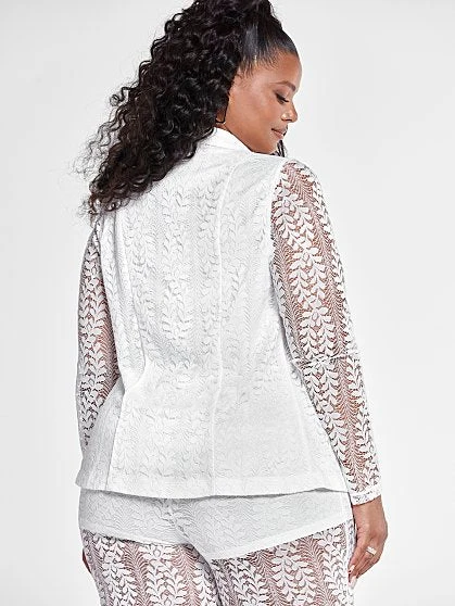 This fun suit separate gives lace a new look. Menswear-inspired, this gorgeous lace blazer is feminine and sexy while keeping it chic. Pair with the matching pants to make some boss moves while looking sexy and cute.