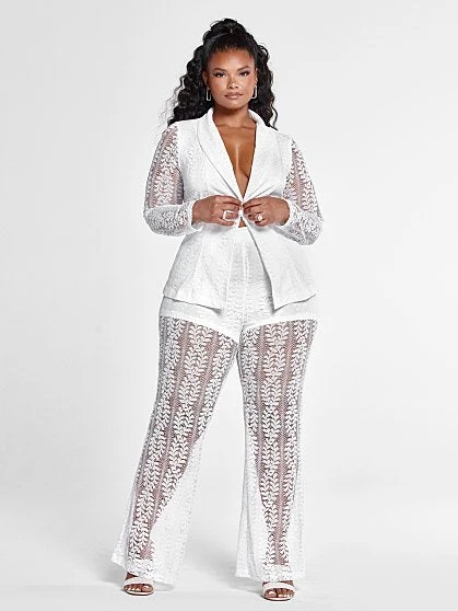 This fun suit separate gives lace a new look. Menswear-inspired, these gorgeous lace pants are feminine and sexy while keeping it chic. Pair with the matching blazer to make some boss moves while looking sexy and cute.