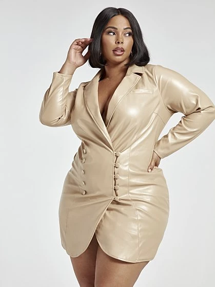 Sophisticated and sexy. That describes this haute faux leather blazer dress perfectly. From the muted nude shade to the fit that’s on point, this luxe dress is a must-have. Pair with heels and a sleek clutch for an unforgettable look.
