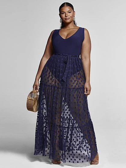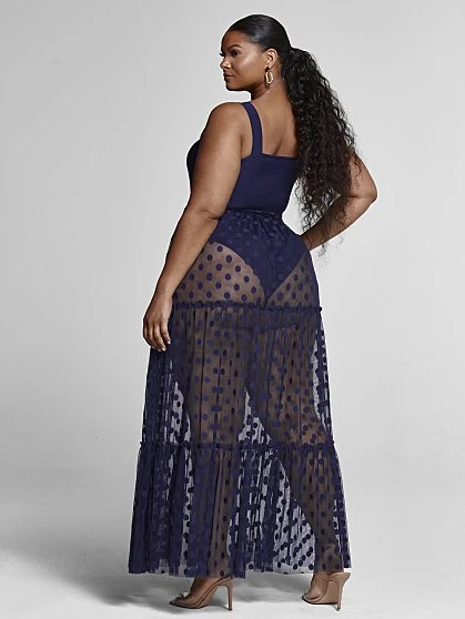 This maxi dress is a whole mood. A Boss mood, that is. And you’ll feel like a boss when wearing this stunner that proves navy is the new black. The polka dots and sheer skirt add a playful element. This is definitely a dress you’ll want to put on repeat. From the SRV x FTF Collection featuring elevated summer-ready styles that are sexy, effortless and chic, sold exclusively at Fashion to Figure.