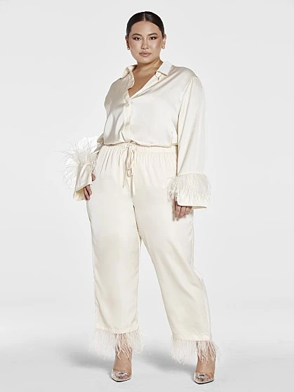 Be the first to review “Fashion To Figure Laila Feather Trim Satin Pants” Cancel reply