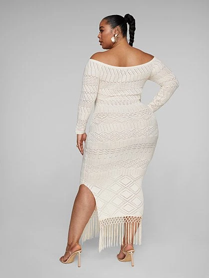 Be the first to review “Fashion To Figure Latonya Off-The-Shoulder Fringe Detail Crochet Dress” Cancel reply