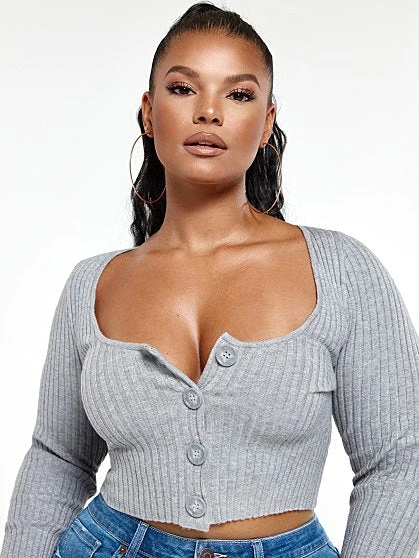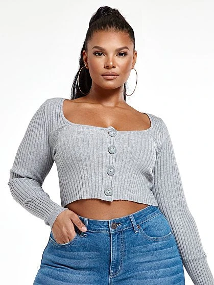 A sexy take on the classic rib knit top, our version has a square neckline and button down front with a cropped length. Effortless and cozy, pair this sexy top with your favorite skinny jeans and booties for a casual chic look.