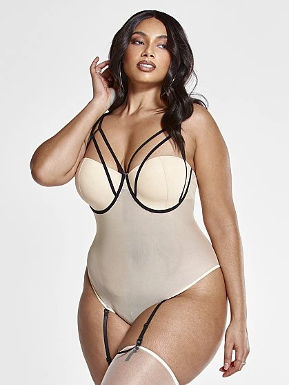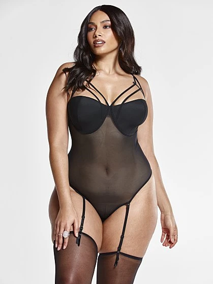 Be the first to review “Fashion To Figure Lexi Caged Bra Mesh Bodysuit With Garter Belt & Stockings” Cancel reply