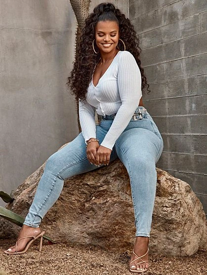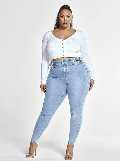 Be the first to review “Fashion To Figure Light Wash Curvy Fit Skinny Jeans With Double Side Belt Details” Cancel reply