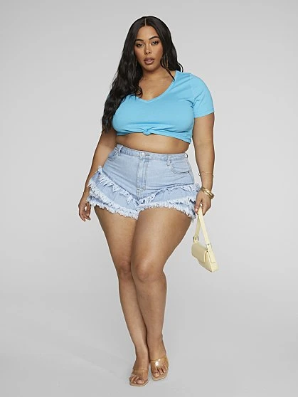 Be the first to review “Fashion To Figure Light Wash Fringe Denim Shorts” Cancel reply