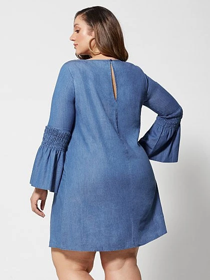 Pretty and fun, this denim shift dress is so effortless. Featuring chic bell sleeves in cotton denim fabric, style with strappy sandals to complete the look.