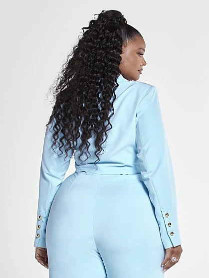Boss up in our version of the Spring suit. A cropped length gives a sexy vibe to this classic blazer and the shade of light blue makes it perfect to wear on a sunny Spring day. Just add the matching trousers, some heels and a statement look to create a stylish menswear-inspired look.