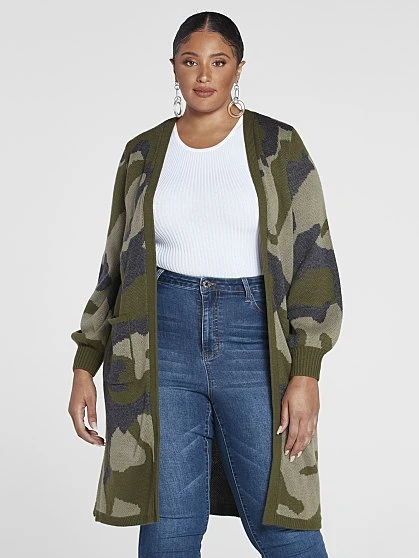 Be the first to review “Fashion To Figure Marguerite Camo Cardigan Sweater” Cancel reply