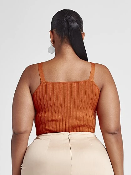 If you’re looking for a chic and effortless tank top that has a dressy feel, Melanie is it. The rust color is a great neutral that pairs well with many colors and prints. The rib knit fabric has lots of stretch and the o-ring detail on the straps offers a stylish detail. Pair this tank with a bodycon skirt, jeans or paperbag waist pants for a standout look.