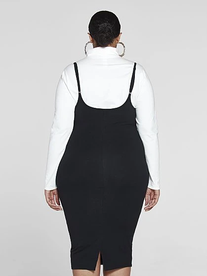 We took the classic suspender skirt and updated it FTF style. Featuring cute thin adjustable straps and a bodycon fit with stretchy knit fabric, this is easy dressing at its best. The high waist shows up your curves and the under the knee length is super chic. Pair with Marjorie Mockneck Knit Top to create a sleek, stylish OOTD.