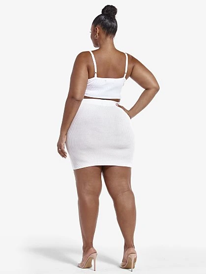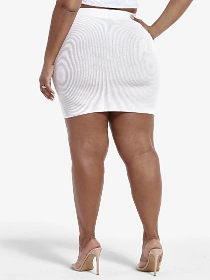 Sleek with an edge, this cute white mini skirt is comfy and effortless. Made from a soft and lightweight ribbed knit stretch fabric, the exposed front zipper detail makes this skirt the perfect choice to throw on when you’re in a rush and want something super cute to wear. Pair with a sweetheart top or mesh top to complete the look.