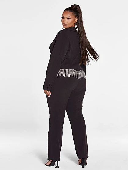 A classic pair of black suit pants that’s an iconic closet must-have. These can be dressed up or down effortlessly and take you easily from day to night. Pair with the stunning and matching rhinestone trim blazer to create a chic and sleek holiday-party ready suit look.