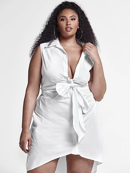 Two words describe this dress perfectly: sexy and effortless. Featuring a front knot detail that cinches in your waist just right and creates a silhouette that hugs your curves, just pair with strappy heels, a cami or pretty bra in a pop of color and clutch to complete the look.