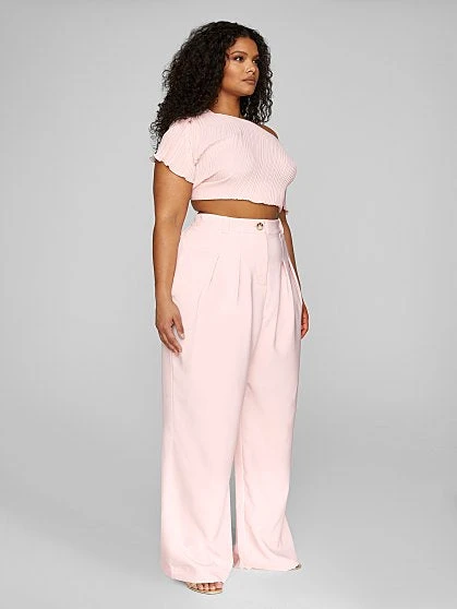 So chic and polished, these pink trousers elevate the classic menswear trend, adding a feminine touch to a structured style. The straight leg silhouette drapes nicely and the pleating keeps it sophisticated. Pair with the matching plisse top for a Pretty in Pink head-to-toe look. From the Leslie Sidora x FTF Summer 2022 collection, featuring wear-now lightweight styles that offer versatility, color and comfort with a luxe feel.