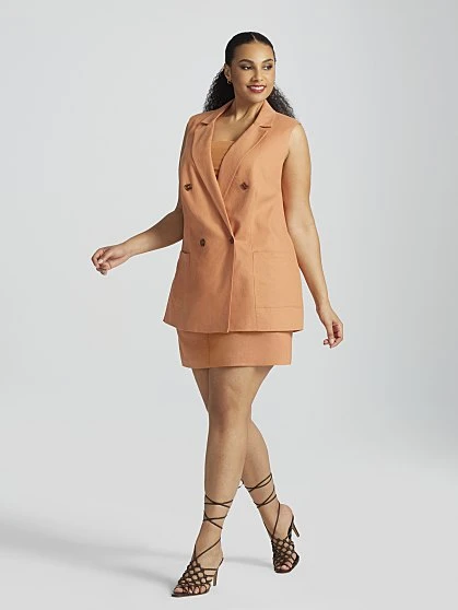 Bring a tailored twist to your summer wardrobe with this sleeveless blazer, that shines in a breathable linen-blend that has some stretch and is lined. It’s airy while structured, perfect to wear in so many looks. Pair with the matching bandeau top and skirt for a chic summer suit look. .
