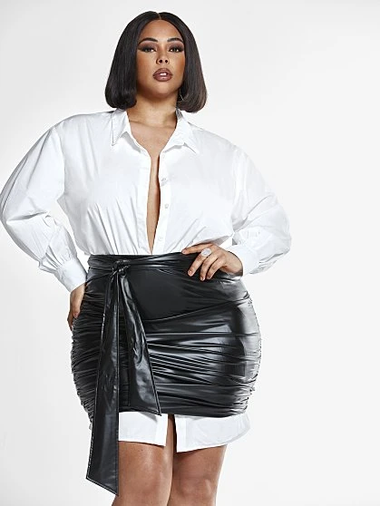 This is an edgy and chic versatile piece that you need in your fashion rotation immediately. This skirt has a luxe look that stands out. The ruching detail and tie waist define and showcase all of your curves, ensuring the fit is on point. Wear on its own with a bodysuit and heels or wear over our Geneva Shirt Dress for a modern, stylish look.