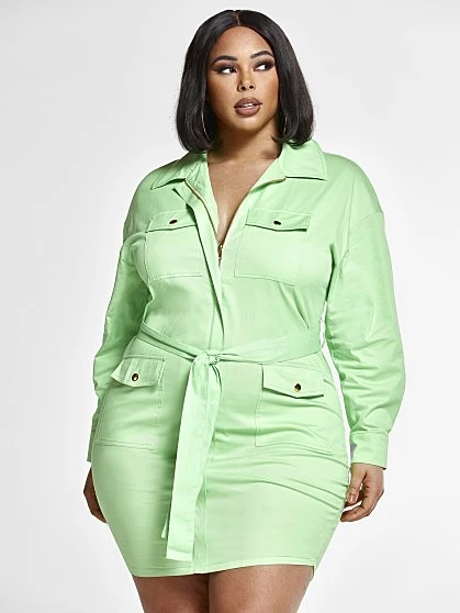 A cute shirt dress is always a good look and this one is a perfect choice when wanting to add some subtle color to your fashion rotation that stands out effortlessly. The front zipper closure lets you decide how deep you want your neckline to be and the tie waist keeps you snatched. Wear with heels or your favorite fun sneakers to complete the look.