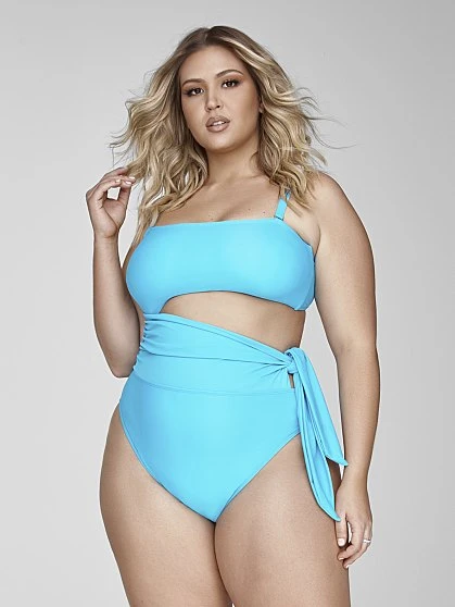 Channel your inner goddess with this gorgeous aqua one-piece swimsuit. The side tie and cutout are everything, making this a stunning statement-maker. The color is bold but chic, and looks amazing against so many different skin tones. Featuring a four-way stretch quick dry fabric that provides SPF/UPF 30+ sun protection, pair with the Kenya Shimmer Cover-Up Dress and sandals to create an unforgettable look. From the Garnerstyle x FTF Resortwear Collection featuring chic, elevated styles created to make you look and feel luxurious, sold exclusively at Fashion to Figure.