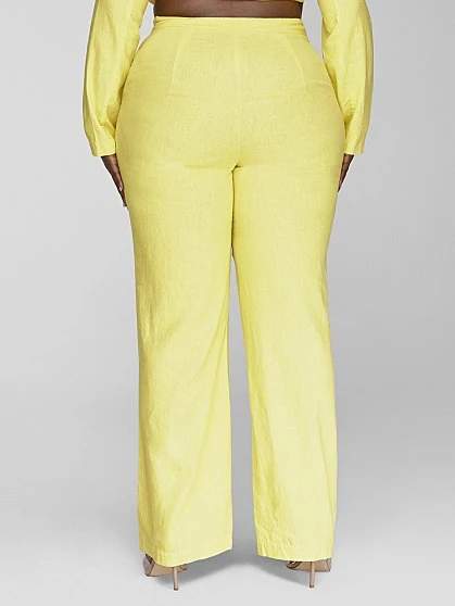 Stand out and shine in these gorgeous yellow linen blend pants that have a wide leg silhouette and side pockets. Pair with the matching tie front crop top for a beautiful head-to-toe look that’s perfect to stunt on ’em wherever you go. From the Garnerstyle x FTF Resortwear Collection featuring chic, elevated styles created to make you look and feel luxurious, sold exclusively at Fashion to Figure.