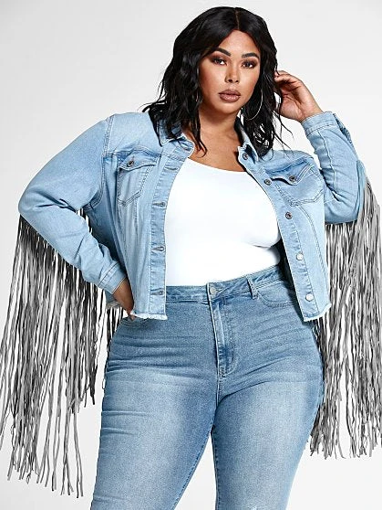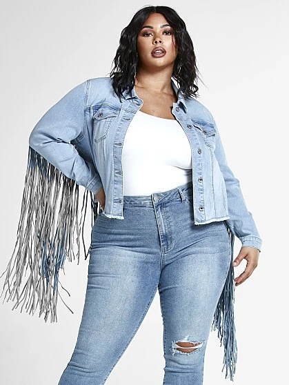 Be the first to review “Fashion To Figure Ruthie Fringe Trucker Denim Jacket” Cancel reply