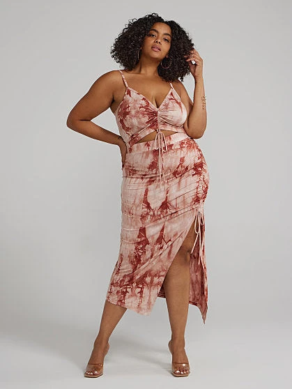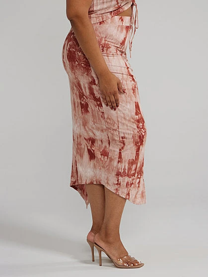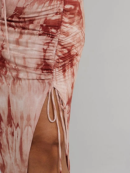 Get summer-ready with this lightweight and effortless midi skirt that shines in a cute tie-dye print. Featuring a high slit and adjustable drawstrings that create a ruched look, this cute skirt is the perfect blend of comfort and versatility. Pair it with the matching top (sold separately) or our bandeau tube top for a vacation-ready look.