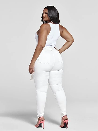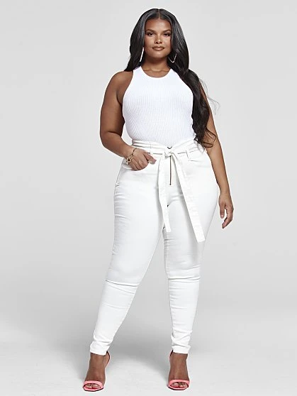 Now available in a beautiful shade of off white! Get that snatched look with these sexy super skinny jeans that have a tie waist and exposed zipper closure. Featuring a high rise fit and a fabric with great stretch and the quality fit that FTF is known for, these curve-loving jeans are a must-have for any FTF babe.
