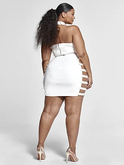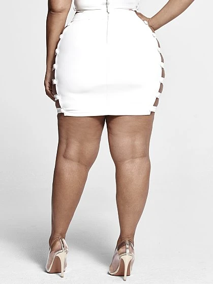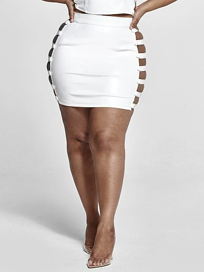 Calling all FTF babes who are looking for a cute set with an edge… it has arrived. Not only does it feature faux leather in a sleek white color but it has some sexy side cutouts that are finished with chic button details at the ends. Theskirt hits above the knees ni a sexy bodycon fit and the matching top (sold separately) has a sexy halter silhouette and cropped length. This set is definitely a vibe you will want to keep going for the rest of summer and into the fall season, mix and matching both separates with other pieces in your closet.