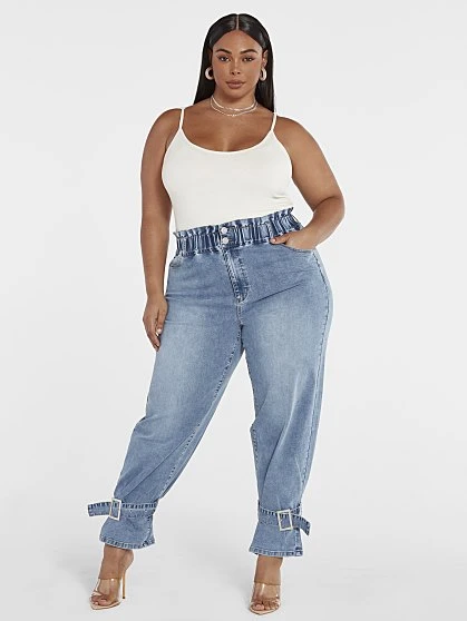 Casual and chic, these ultra high rise jeans have an elastic waist, double button closure and belt buckle detail at the ankles, which make these a standout. Still the same great stretch fabric and quality fit that FTF is known for, these jeans are a cute must-have, making them the perfect addition to any hot FTF Babe look. Pair with a bodysuit, blazer and stilettos for a gorgeous look.