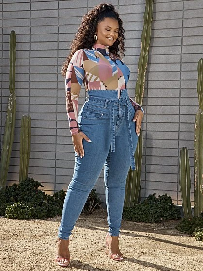 Our popular ultra high-rise skinny jeans elevated in a chic medium blue wash with a self tie waist, perfect to wear all day every day. Featuring a fabric with great stretch and quality fit that FTF is known for, these are a must-have for any season.