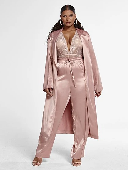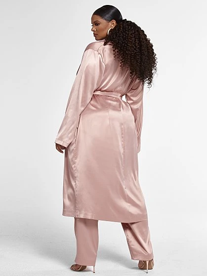 This luxe duster will elevate any look to chic status. The pretty blush shade and the under the knee length is so stylish and glamleisure perfection. Pair with the matching pants for a head-to-toe satin look that’s effortless and gorgeous.