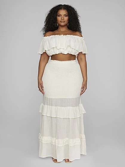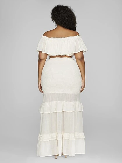 Lightweight, airy and romantic, this neutral set is giving off sophisticated boho vibes, just in time for summer. This set is perfect for so many moments from dinner with Bae, drinks with friends or even vacation. Featuring a beautiful ruffle detail at the waist and a tiered maxi silhouette, this skirt is an effortless stand-out. Pair with the matching top (sold separately) to create an OOTD that will turn heads this summer. Or mix and match with other pieces from your closet to create fresh looks all season long.