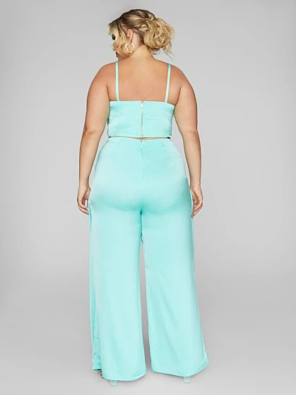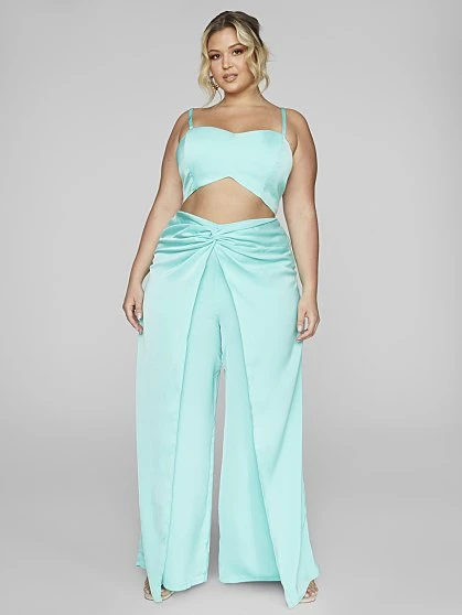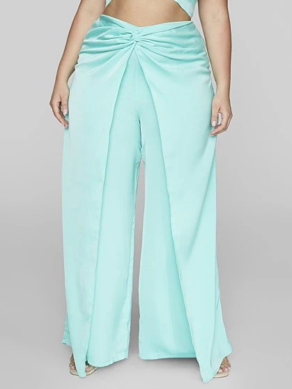 These gorgeous pants are giving chic mermaid vibes with its stunning light green colorway and satin-like fabric. The fabric overlay and twist detail at the center front waist area adds special details that elevate these pants to fancy levels. Pair with the matching crop top (sold separately) to create a party-ready look this summer.