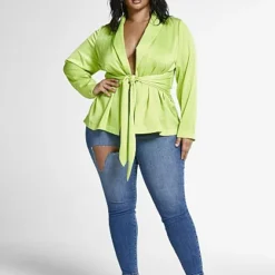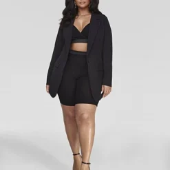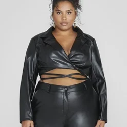 Fashion To Figure Jenesia Faux Leather Cropped Blazer Top