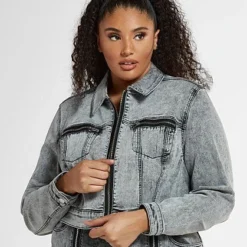 Fashion To Figure Alexis Cropped Denim Jacket With Zipper Detail