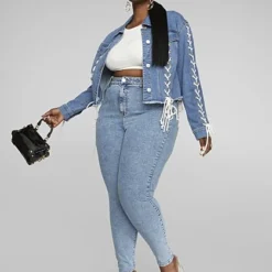 Fashion To Figure Ruthie Fringe Trucker Denim Jacket