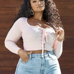 Fashion To Figure Isabelle Cropped Lace-Up Front Top