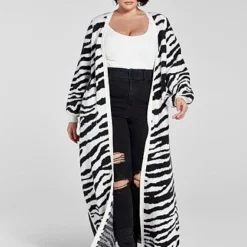 Fashion To Figure Dayana Zebra Print Long Cardigan