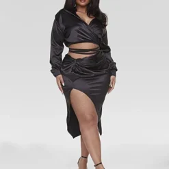 Fashion To Figure Rena Satin Wrap Midi Skirt