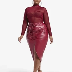 Fashion To Figure Paulina Faux Leather Skirt With Ruching Detail