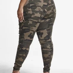 Fashion To Figure High-Rise Super Skinny Destructed Jeans In Green Camo