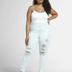 Fashion To Figure Light Wash High-Rise Destructed Jeggings