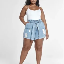 Fashion To Figure Tie Waist Destructed Cuffed Shorts With Button Fly