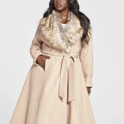 Fashion To Figure Jessenia Faux Fur Collar Long Coat