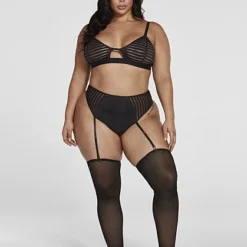 Fashion To Figure Ayanna Stripe Mesh Garter Set