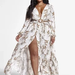 Fashion To Figure Gabriella Palm Print Maxi Dress